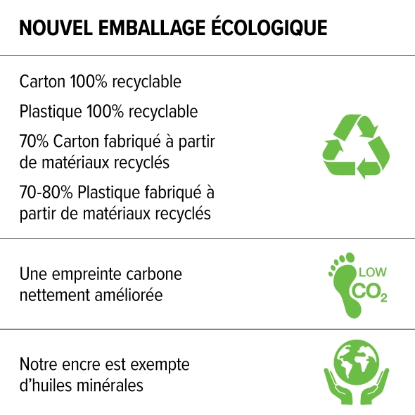 70% Carton fabriqué à partir de matériaux recyclés